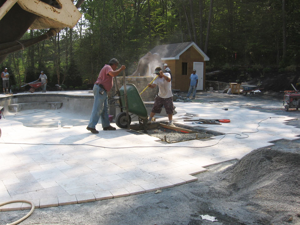 Pouring for a concrete pool deck in Hopkinton, MA.
